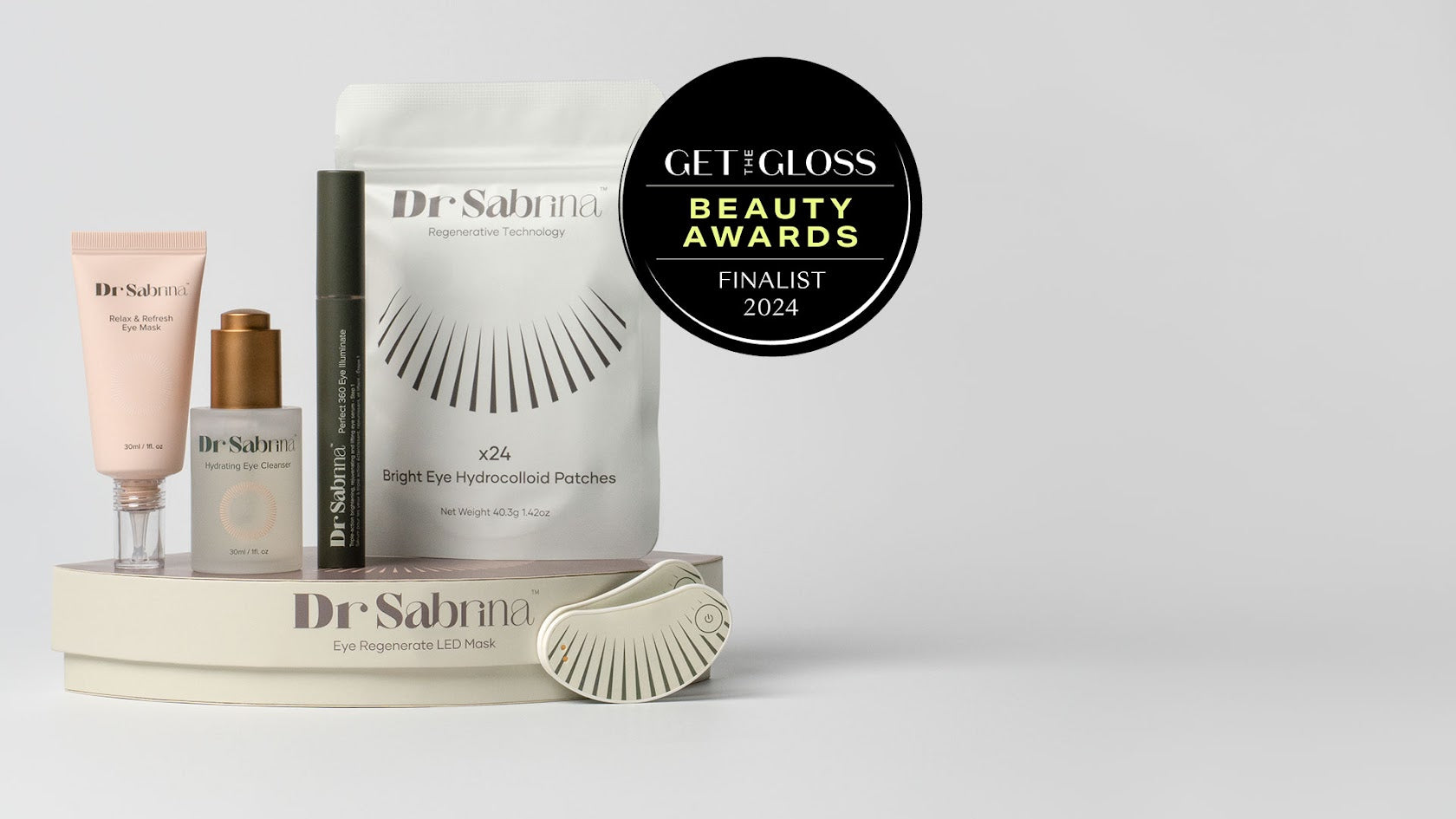"So proud of our LED Eye Mask making runner up against industry giants for the Best LED Tool at the Get The Gloss Beauty Awards 2024" - Dr Sabrina Shah-Desai
